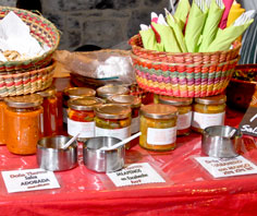 A fantastic Rane of bottled pickled chiles, salsas for dipping or marinadeing