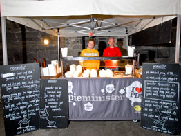 We serve gourmet pies with yummy mash, gravey and minty peas, using all organic, freerange ingredients.
